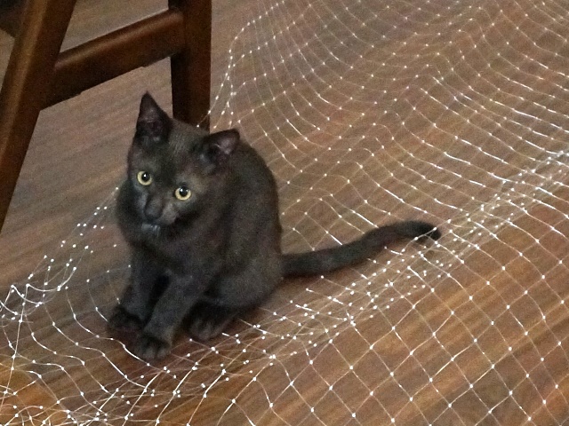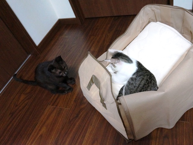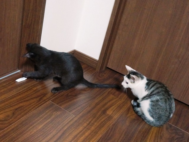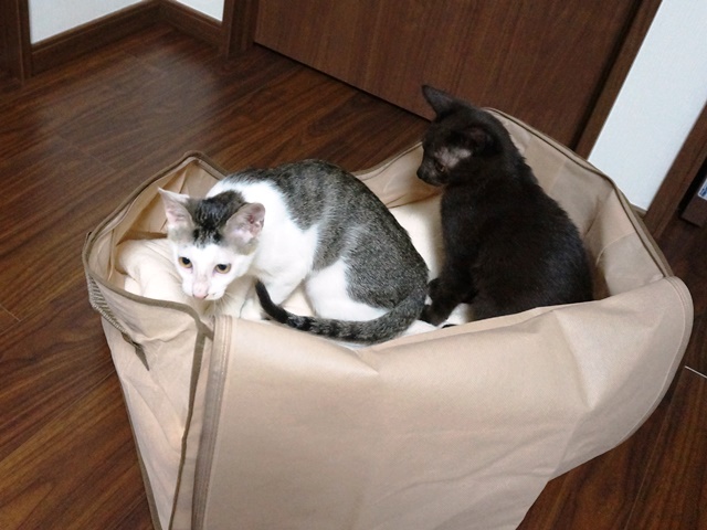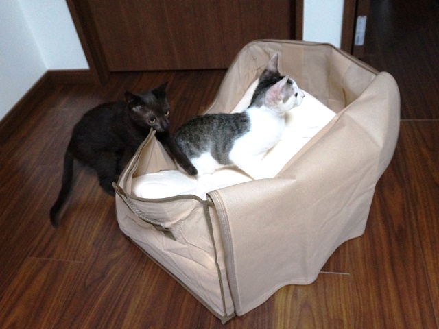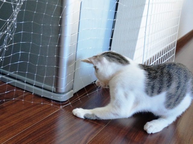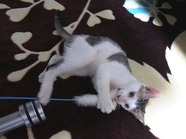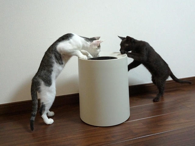 これはウェットフードをあげる時に使っている物なのですが、すぐに、白キジ「坊ちゃん」がキッチンから咥えて持って行ってしまいます。