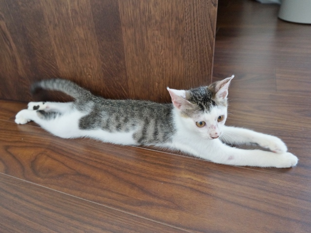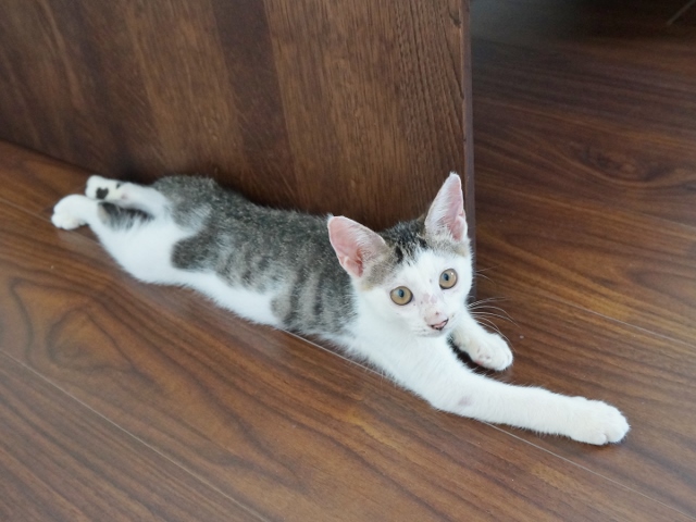 猫の後ろ足って、こんなふうにピーンと伸びたっけ?