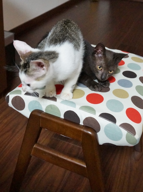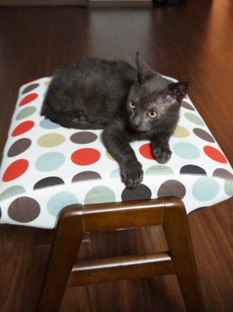 リビングでも平気で遊べるようになってきた「チョコちゃん」が、イスの上でくつろいでいると。
