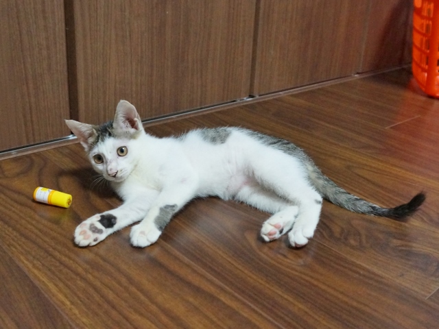 なかなか真菌ハゲが完治しない白キジ「坊ちゃん」。