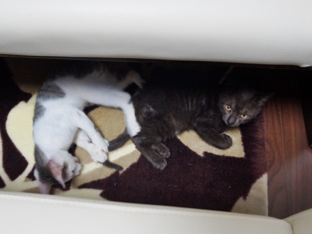 今は、キーボードを収納する狭いスペースに潜り込むのがブームのようです。