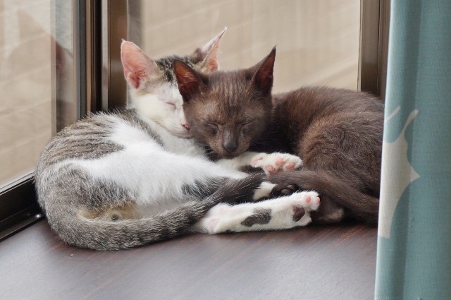 ふたり仲良く出窓でお昼寝。