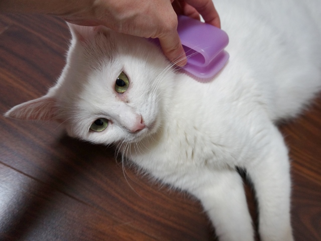 ブラッシングが大好きで、ず~とゴロゴロ言ってます。