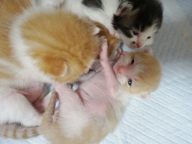 でも、仔猫たちはヨチヨチと動き回り、ちっとも言う事を聞きません。