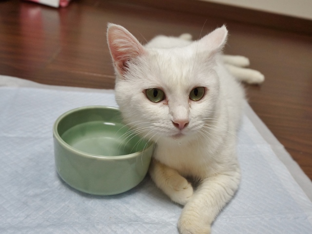 こびり付いた目ヤニを取ってやると、左目が少し開きました。