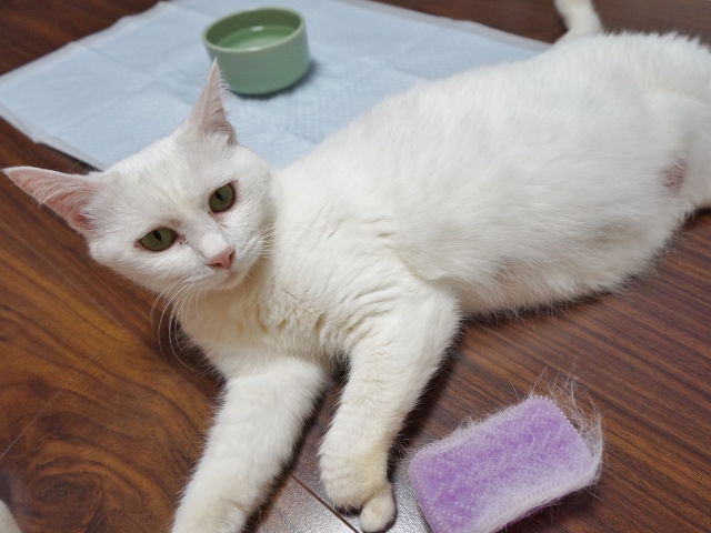 換毛期で、ナデナデしていると抜け毛がスゴイので、毎日ブラッシング。