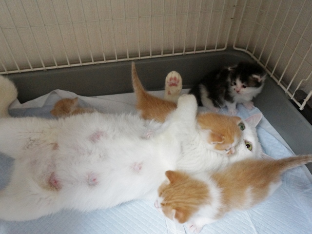 ちょうど赤ちゃん猫のお世話がひと段落したところだったのかな?